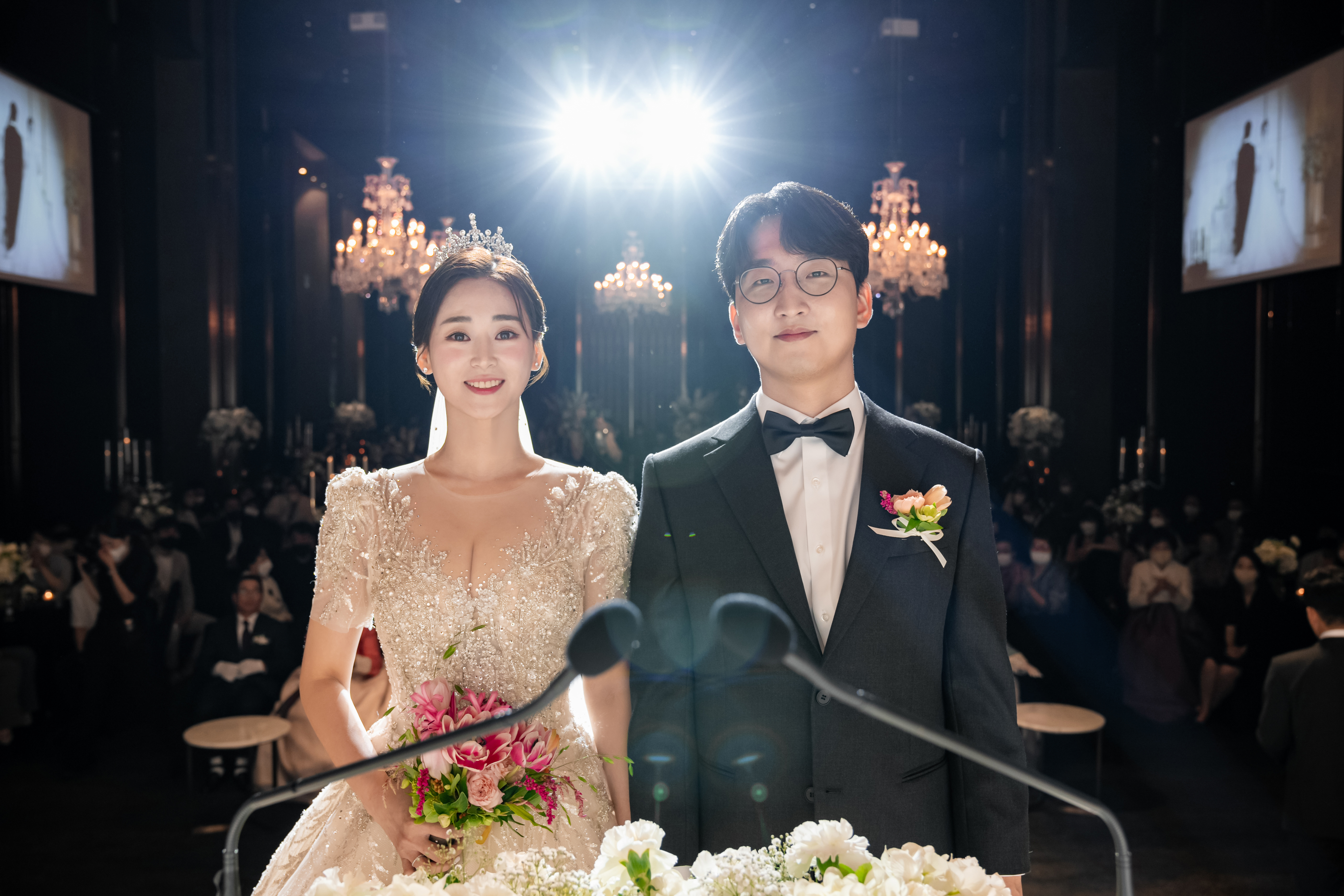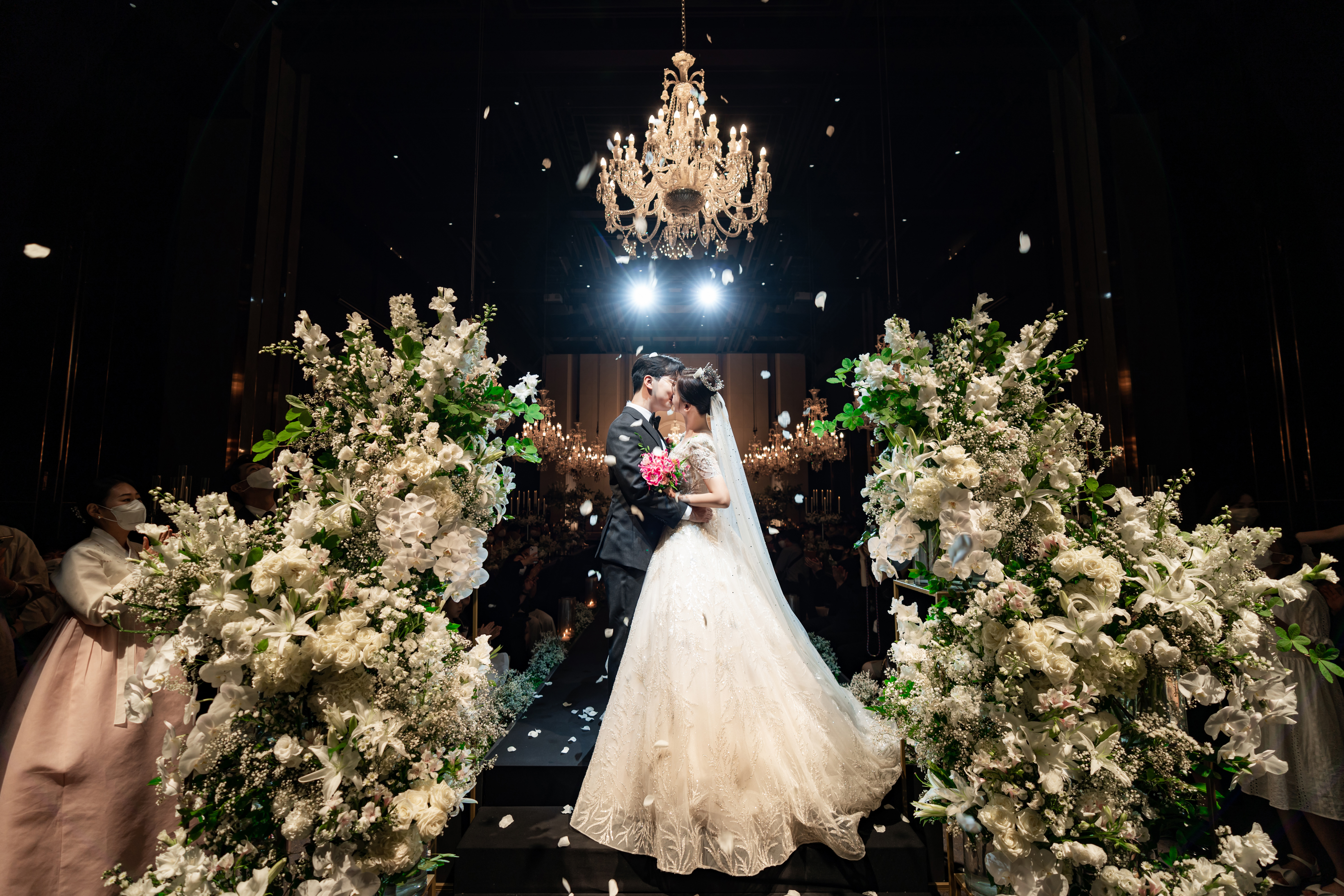 나름 전체적인 홀의 분위기와 저희의 엄청난 샷!과 함께 플라워샤워 사진까지 이쁘게 나왔다.