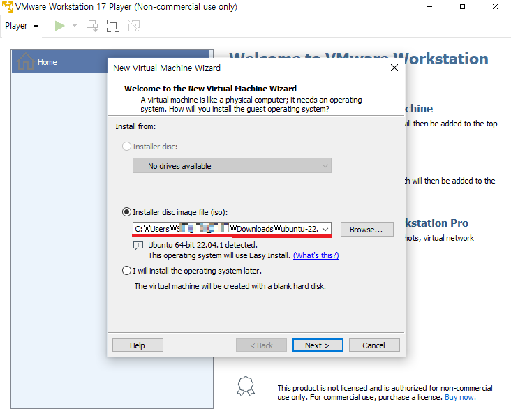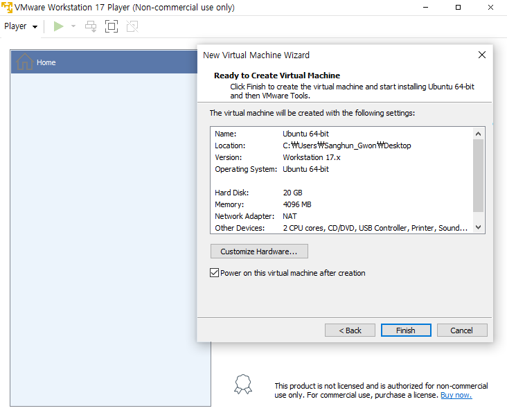 이제 준비가 되었으니 VMware에 우분투를 설치하면된다.