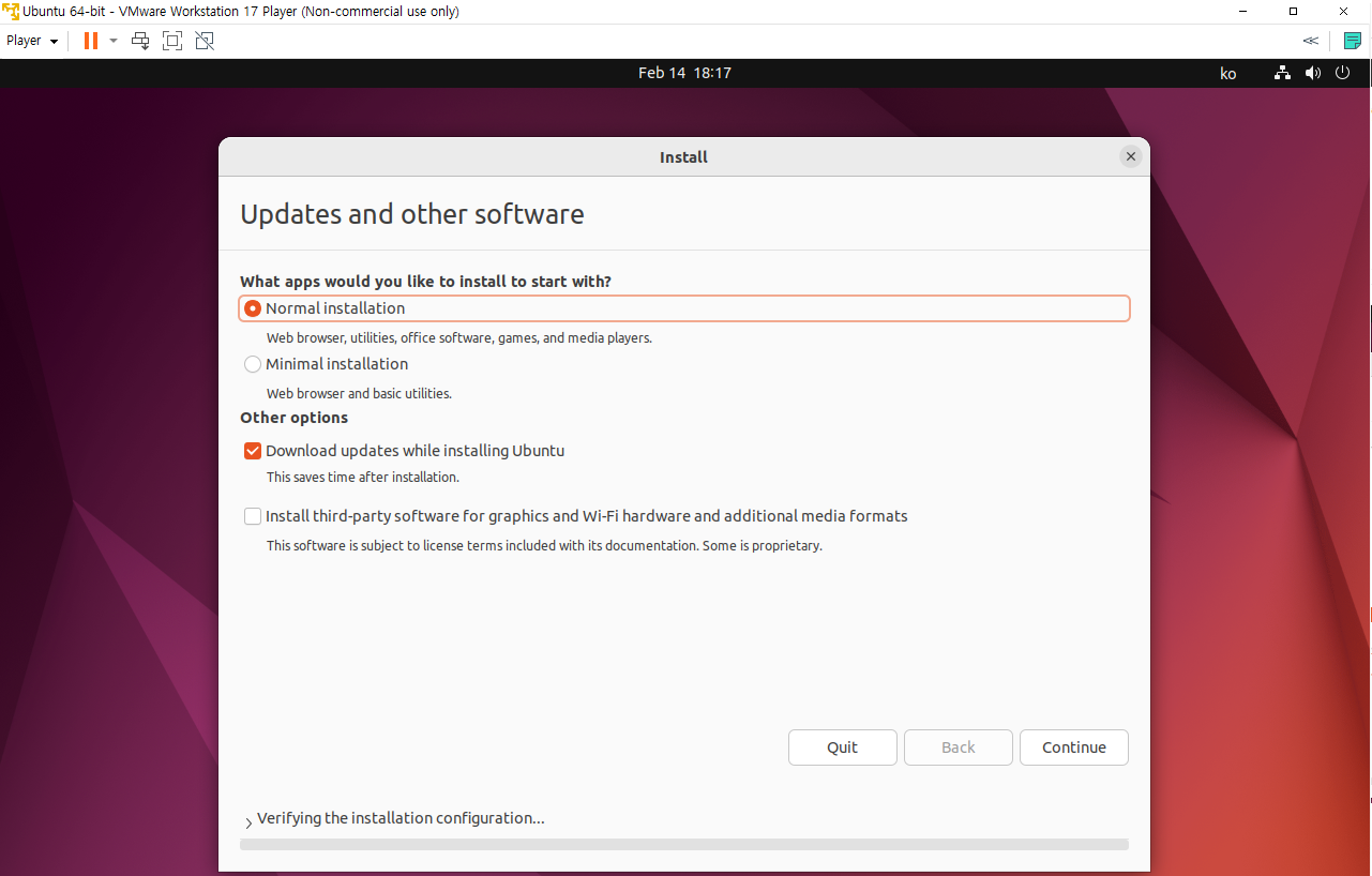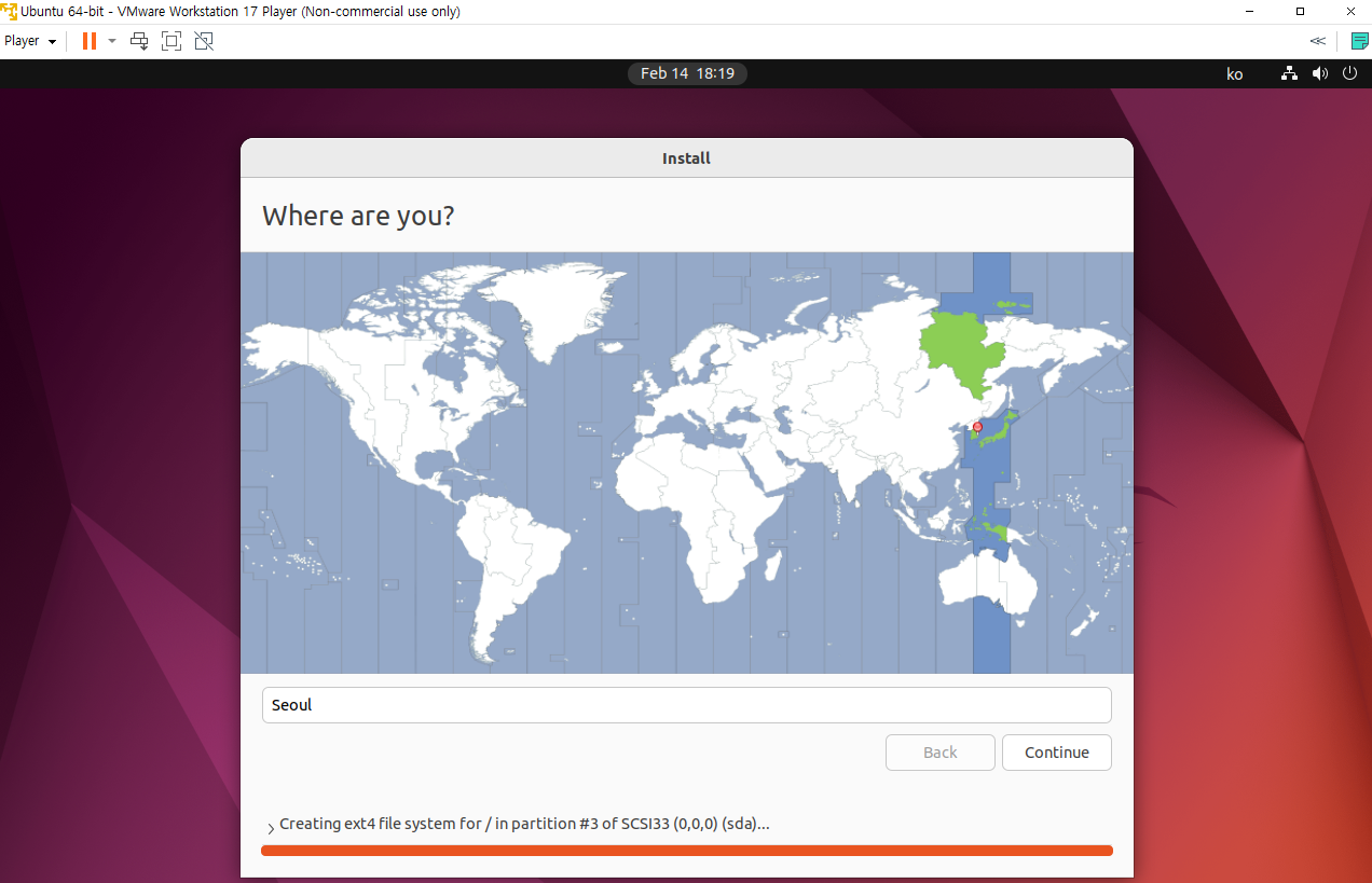 다음과 같이 진행하면 우분투가 설치되고 몇몇 설정들을 물어보지만 사실상 스킵해서 상관없기에 각자 읽어보고 선택하면 될 것같다.