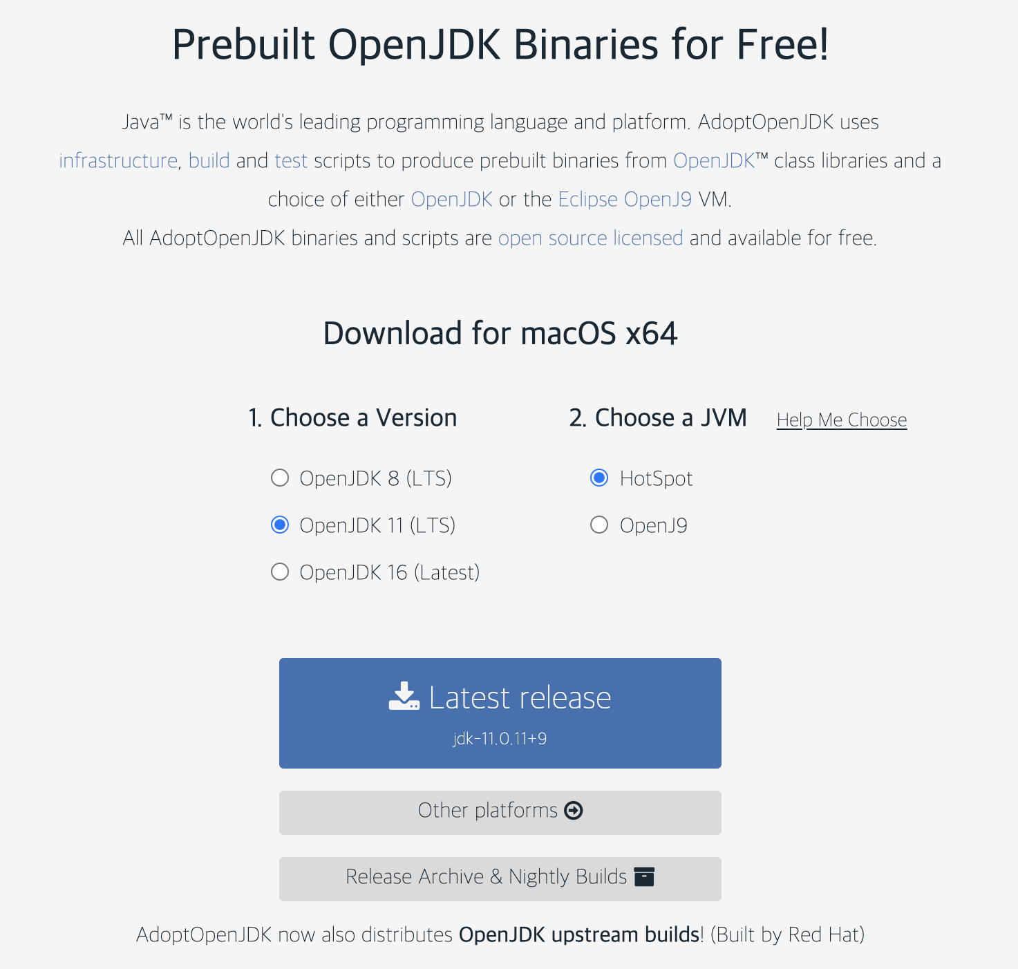 여기서 제가 사용하고자 하는 OpenJdk는 AdoptOpenJDK를 선택하였다.
