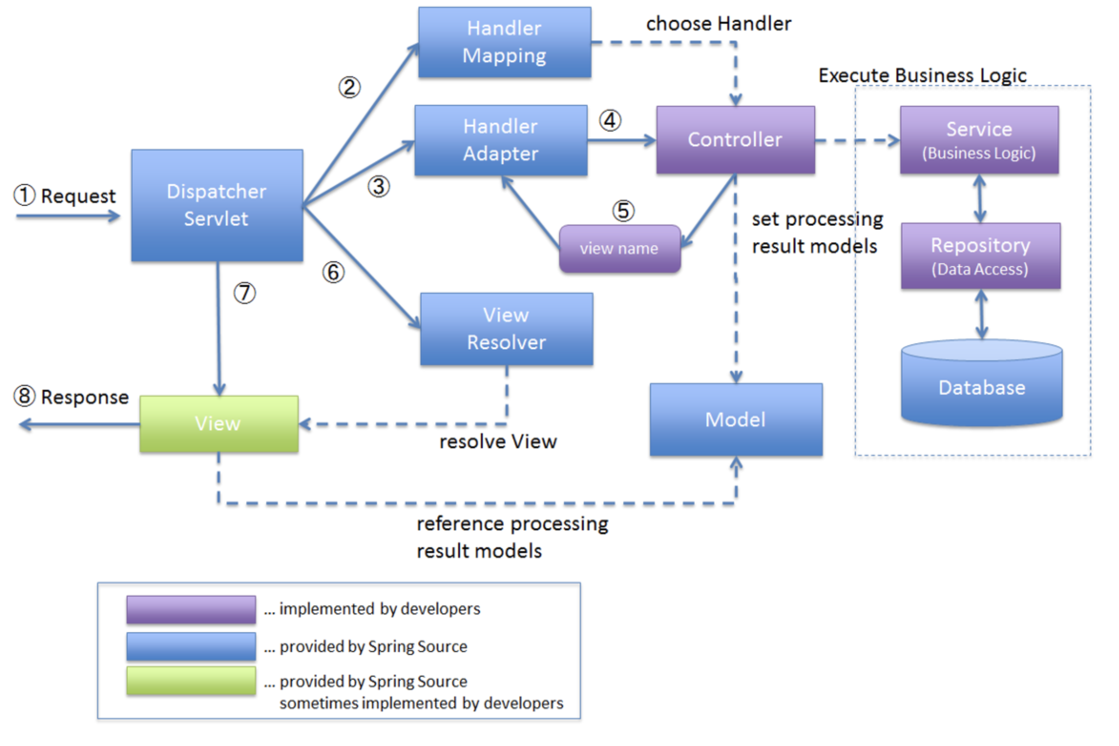 - Dispatcher Servlet은 요청을 Handler Mapping에게 전달하고 Handler Mapping이 알맞은 컨트롤러와 메서드를 찾게 된다.