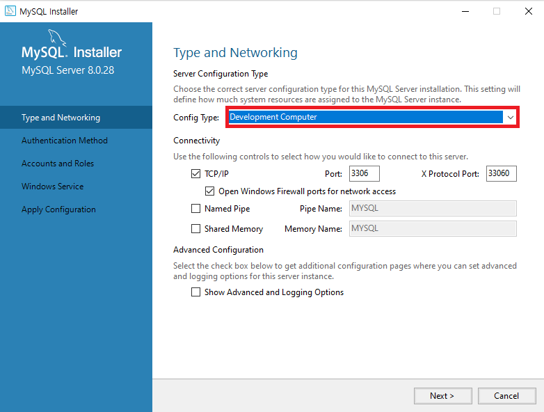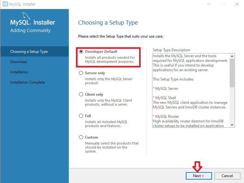 설치 타입을 선택하게되는데 집에서 가볍게 사용할것이기 때문에 디폴트로 선택해주면 된다.