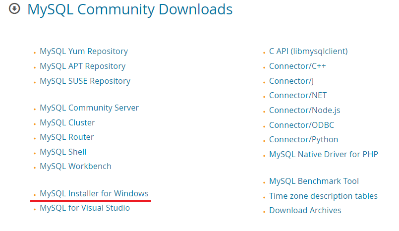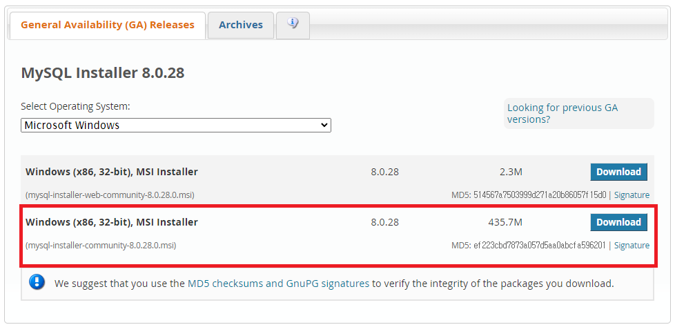 윈도우에서 설치할 예정이기 때문에 'MySQL Installer for Windows'를 클릭한다.