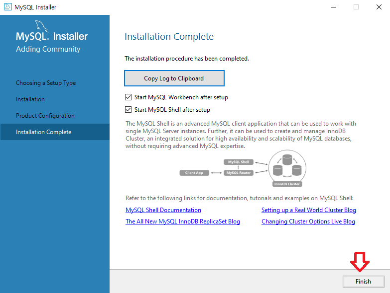 Finish 버튼과 함께 설치를 끝내주면된다.
